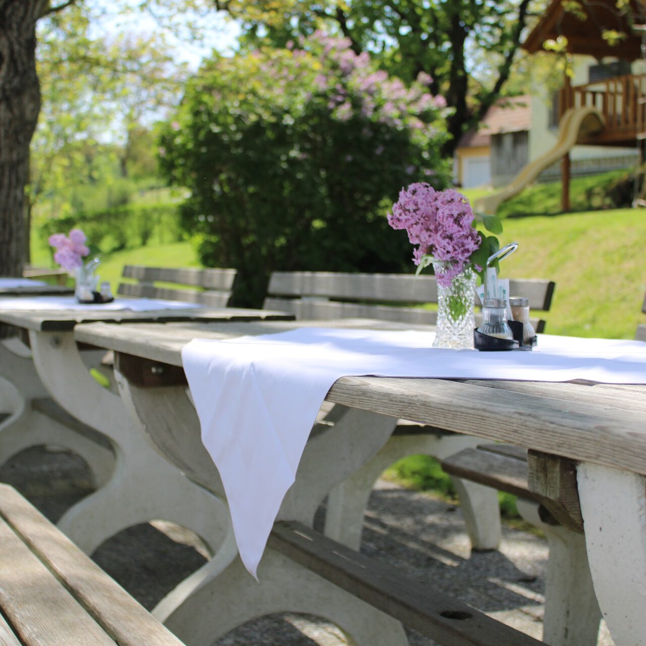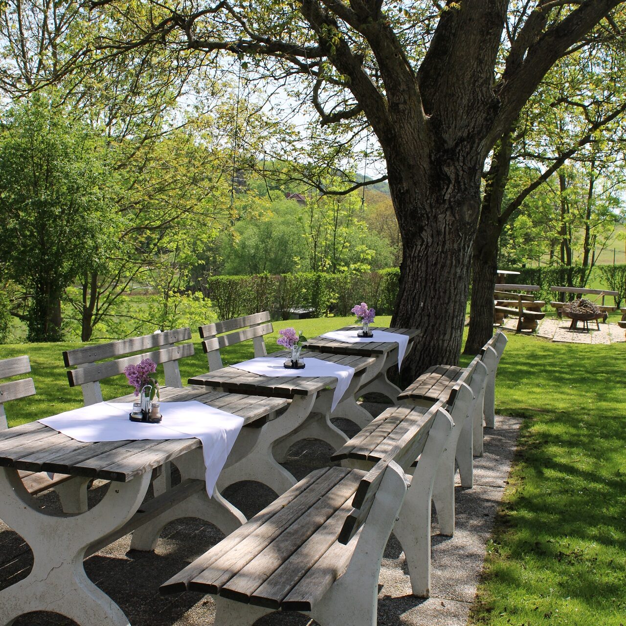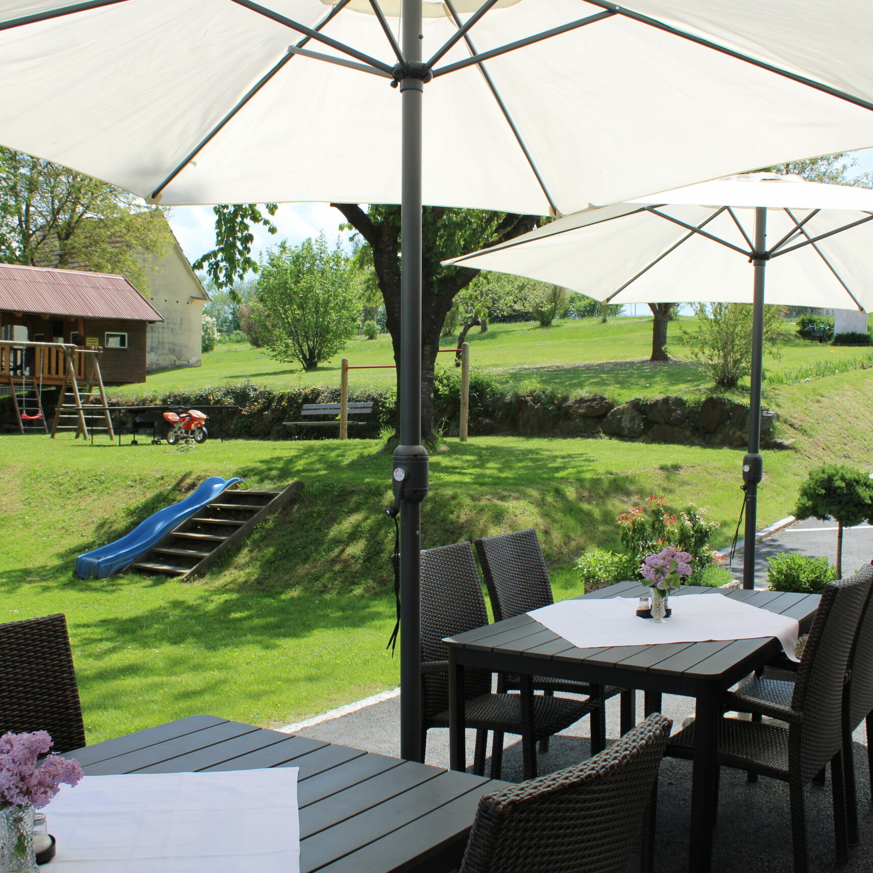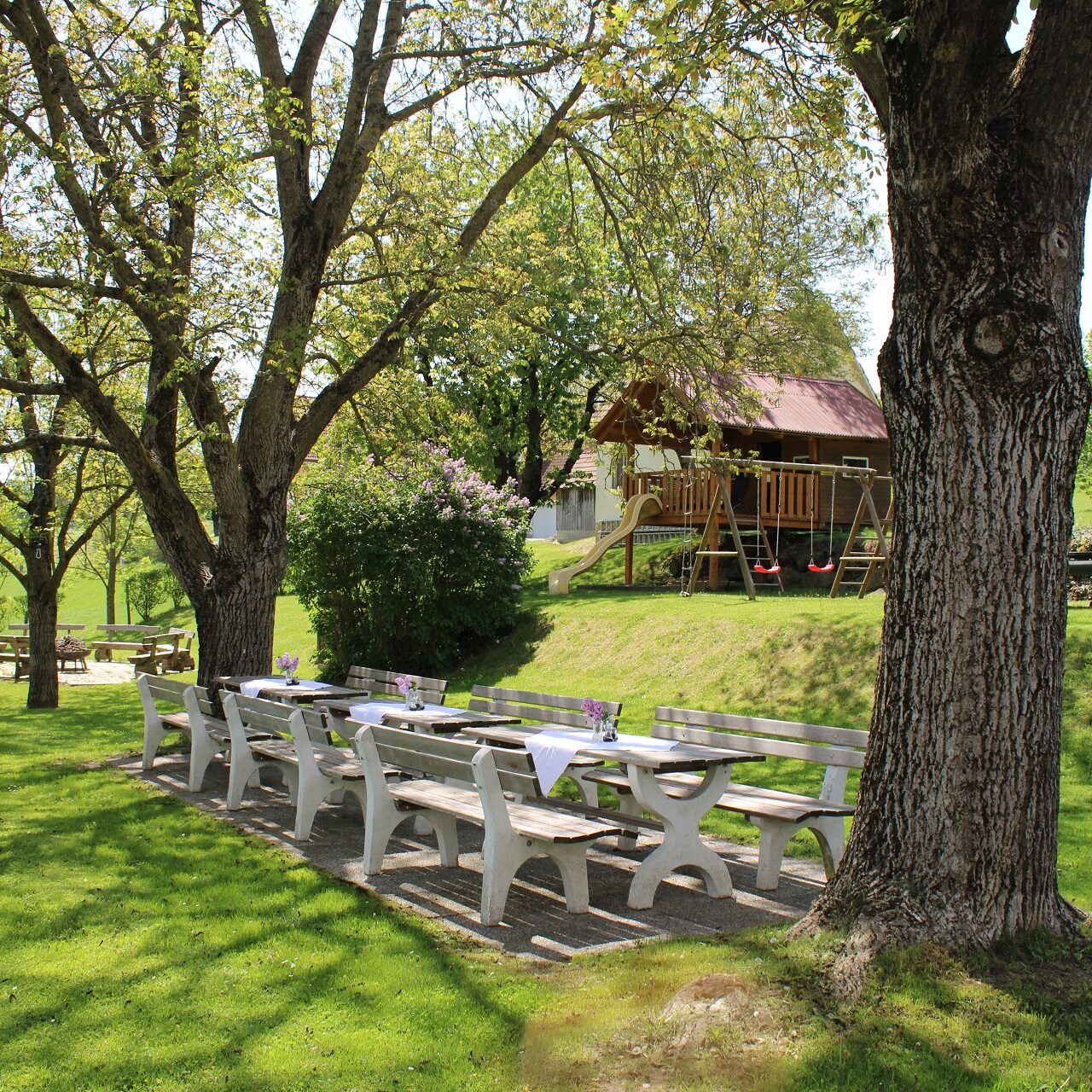 In unserem Gastgarten, direkt vor dem Haus, haben Sie die Möglichkeit auf der neu gestalteten Terrasse oder auf der Wiese unter den Nussbäumen Platz zu nehmen. Der kinderfreundliche Spielplatz mit Rutsche, Sandkasten und vielem mehr, sowie unser Grillplatz befinden sich in unmittelbarer Nähe.